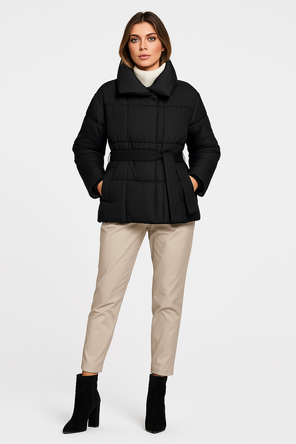 Élodie™ – Doudoune ceinturée noire midi ✨