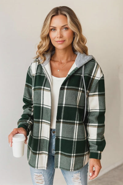 Camille™ – Cardigan douillet à capuchon en tartan vert forestier