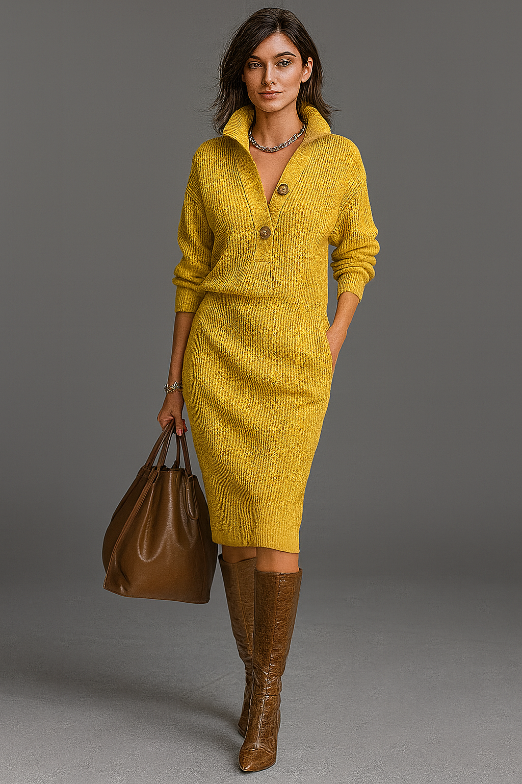 Léonie™ – Robe pull en laine jaune soleil 💛